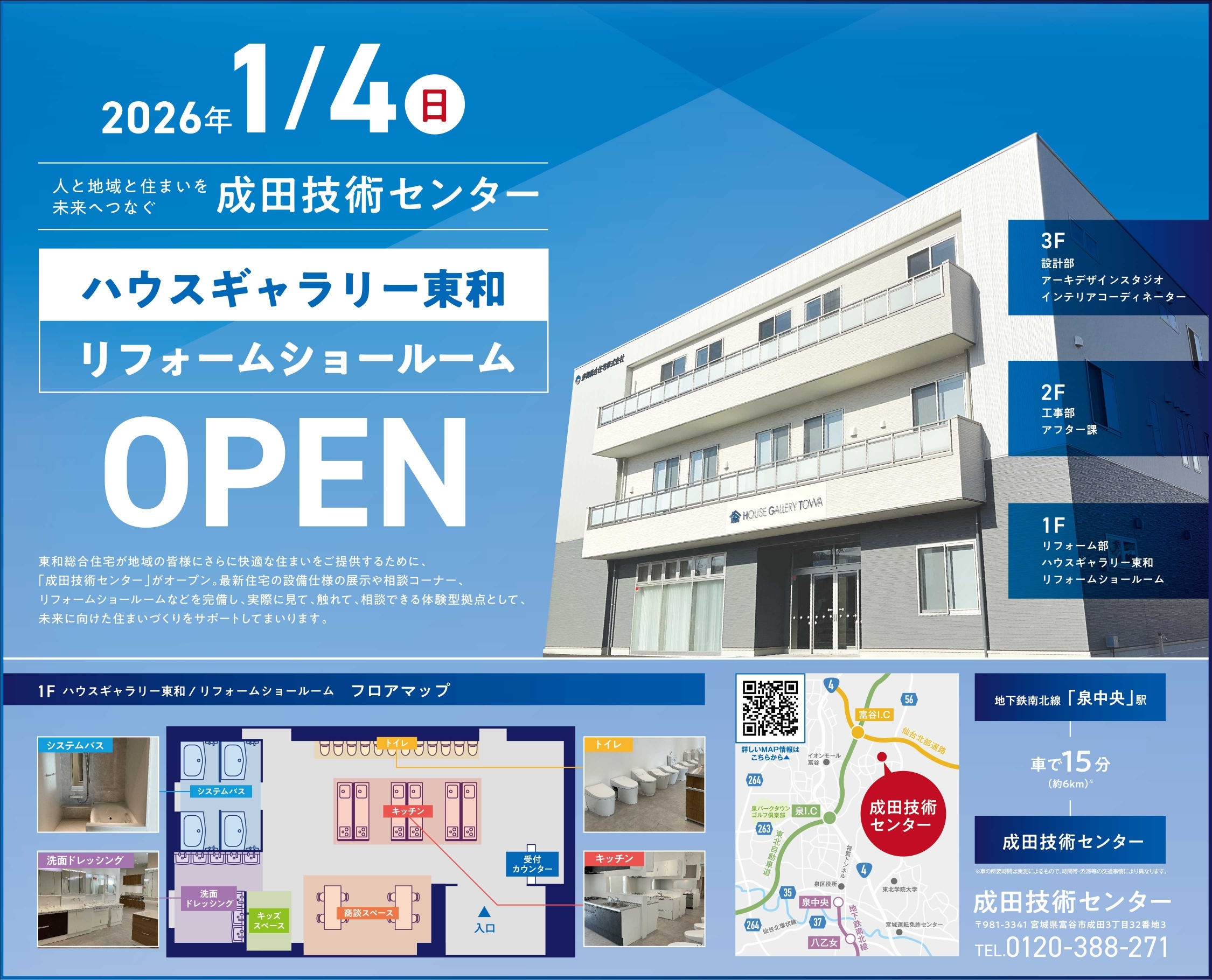 アイフルホーム宮城は、2026年1月4日(日)、住まいづくりの品質と提案力をさらに高める拠点として成田技術センターを開設し、あわせてハウスギャラリー東和 リフォームショールームをオープンいたしました。